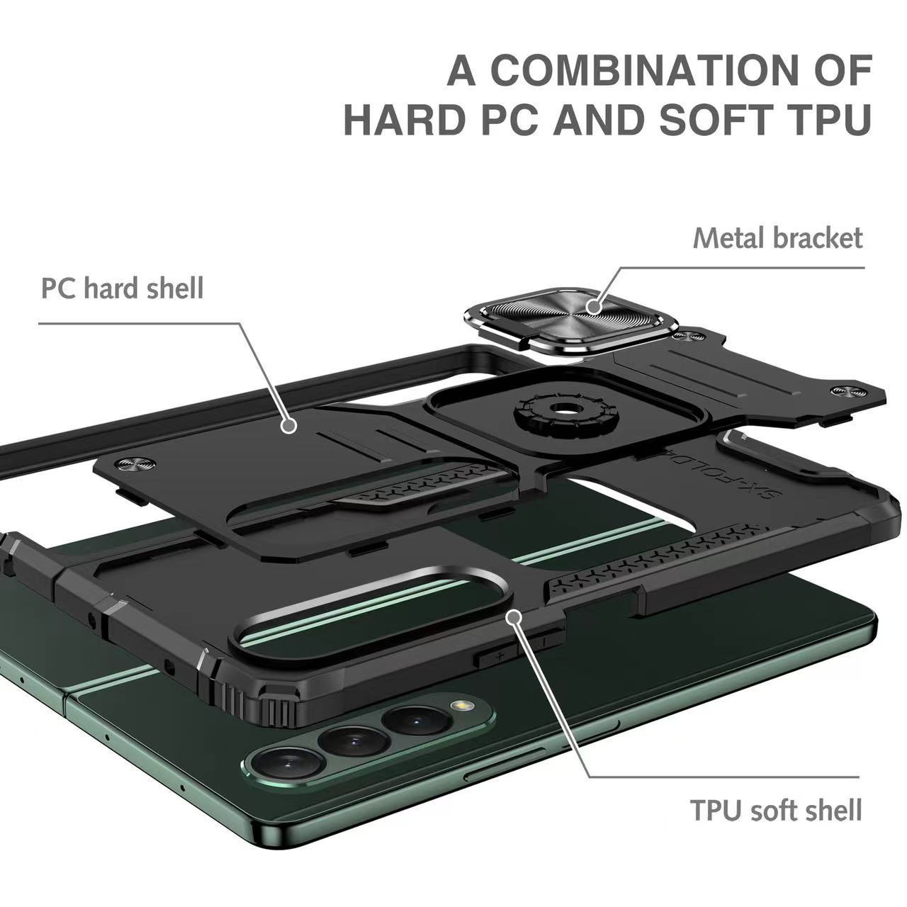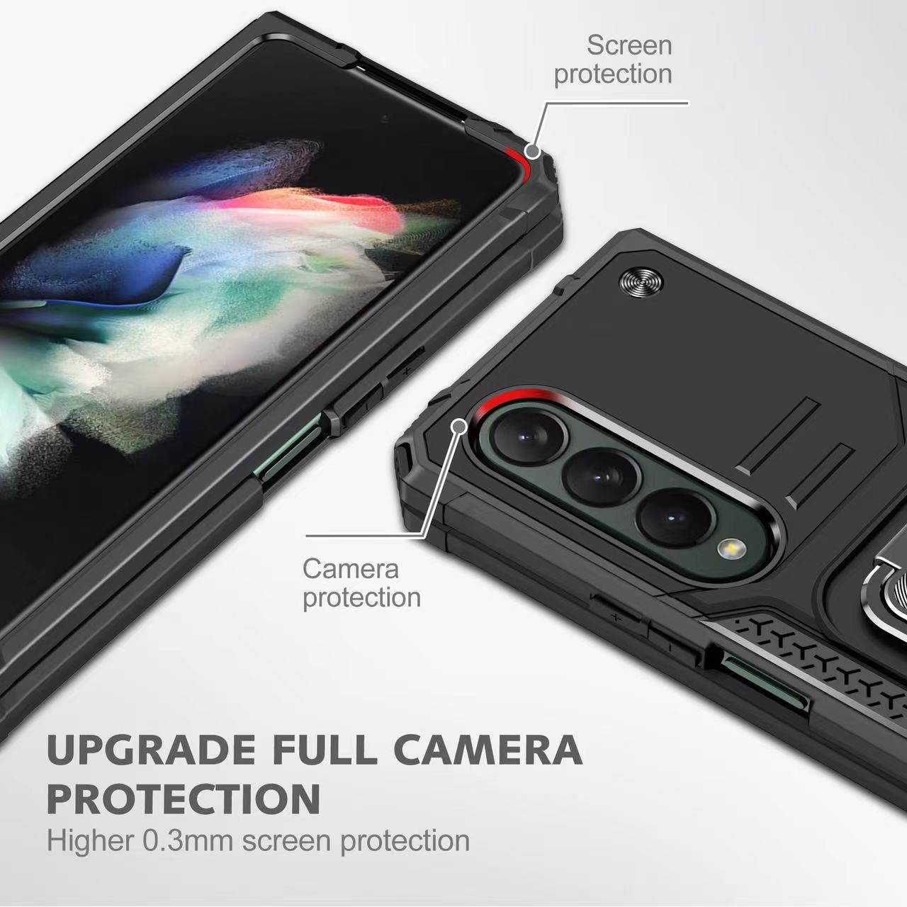 D64 – Black 6.7 inch Samsung Z Fold 4 Case Armor Shockproof Lens Protection Stand Holder Cover – Georgia Phone Case