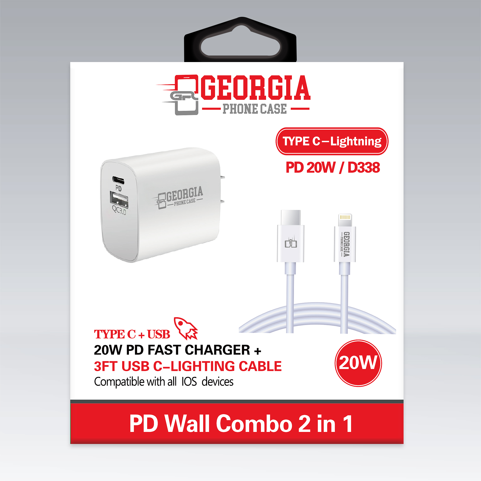 D338 – 2 in 1 20W TYPE C & USB, 3FT Lightning to TYPE C Cable 20W for iPhone 12 Pro Max 12 11 XR XS 8 Retail Packaged – Georgia Phone Case