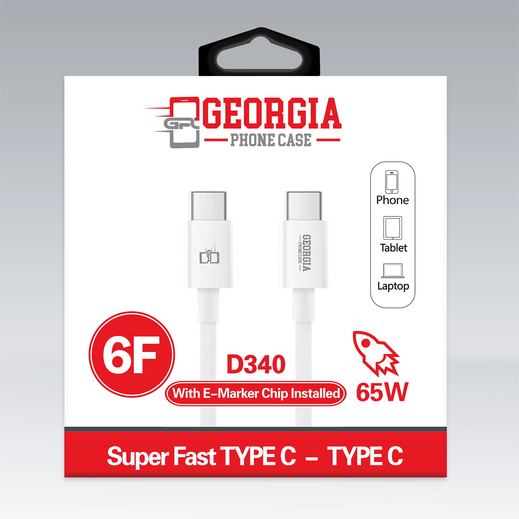 D340 – 6F TYPE C TO TYPE C 65W Fast Premium Charging Cable for Phones, Laptop & Tablet MacBook 15 Pro Max Samsung S21- Georgia Phone Case