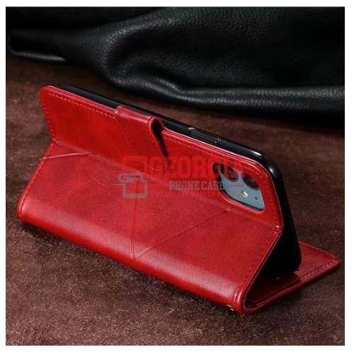 D75-Red 6.1inch iPhone 11 Embossed Rhombic Flip PU Leather Case With Card Slot Wallet Magnetic Stand Top Grade – Georgia Phone Case