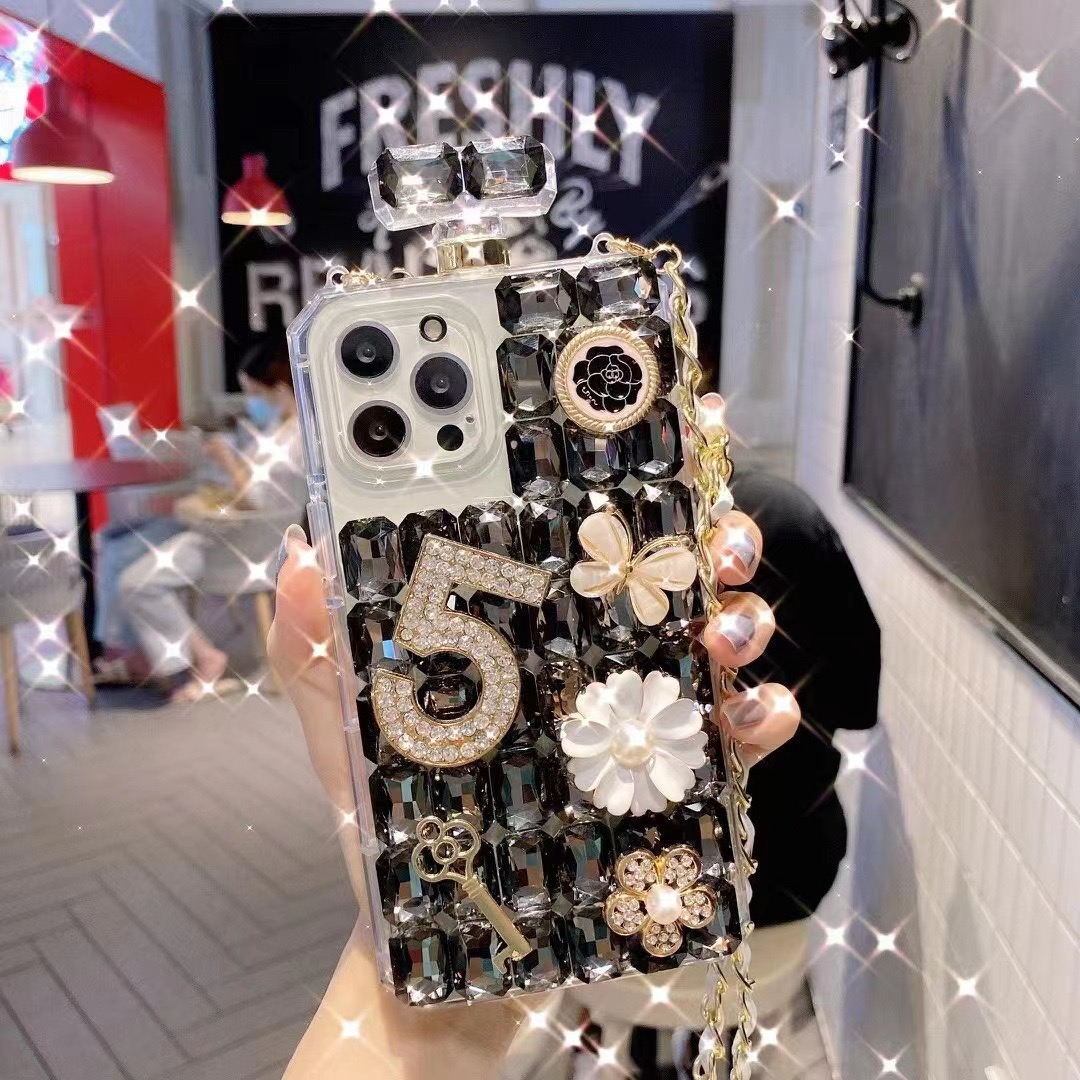D450 – Black Bling Diamond Butterfly Perfume Bottle Case for iPhone 15 Plus 6.71 inch- Georgia Phone Case