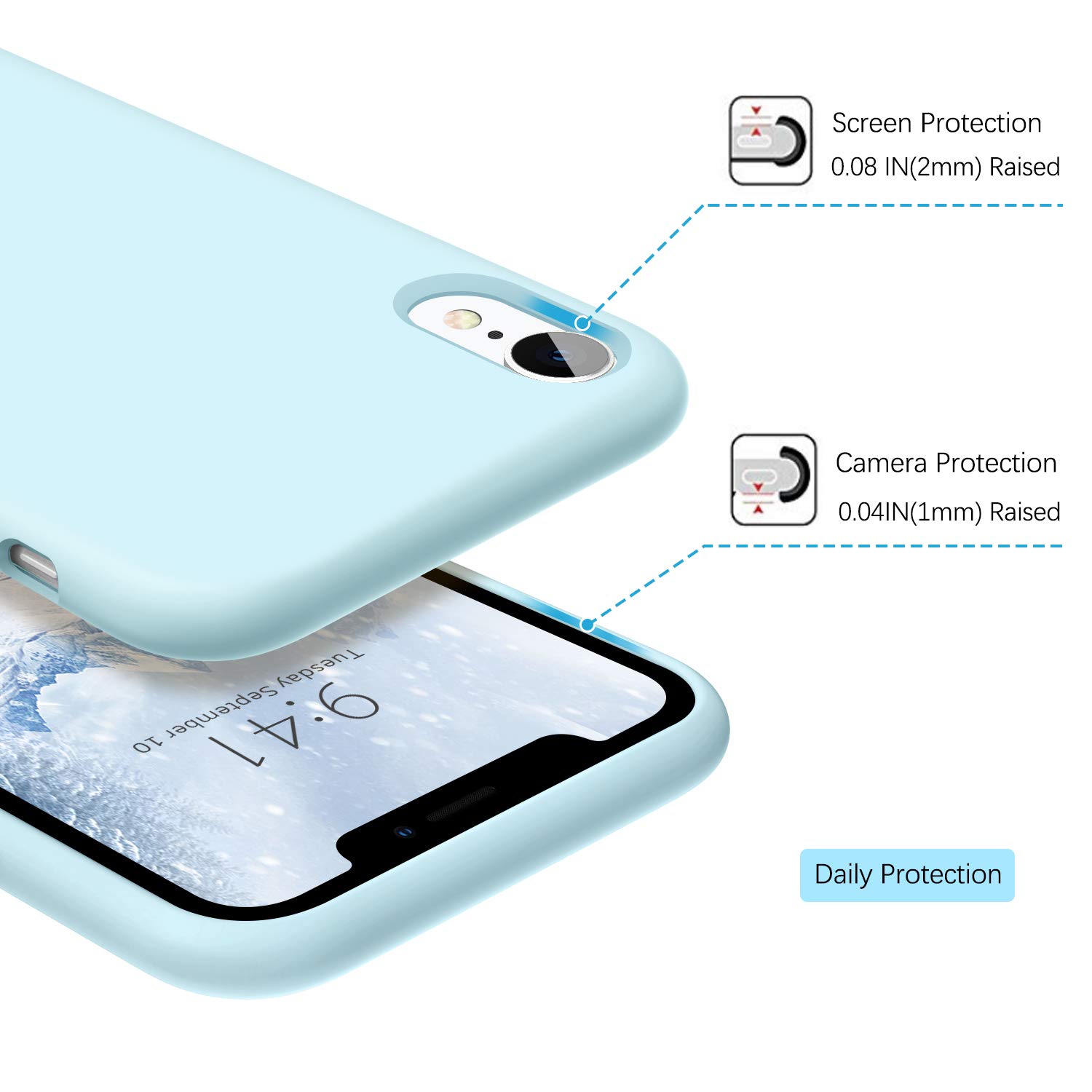 Product description: Light Blue 6.1inch iPhone XR Liquid Silicone Case Slim Soft Gel Rubber Back Cover