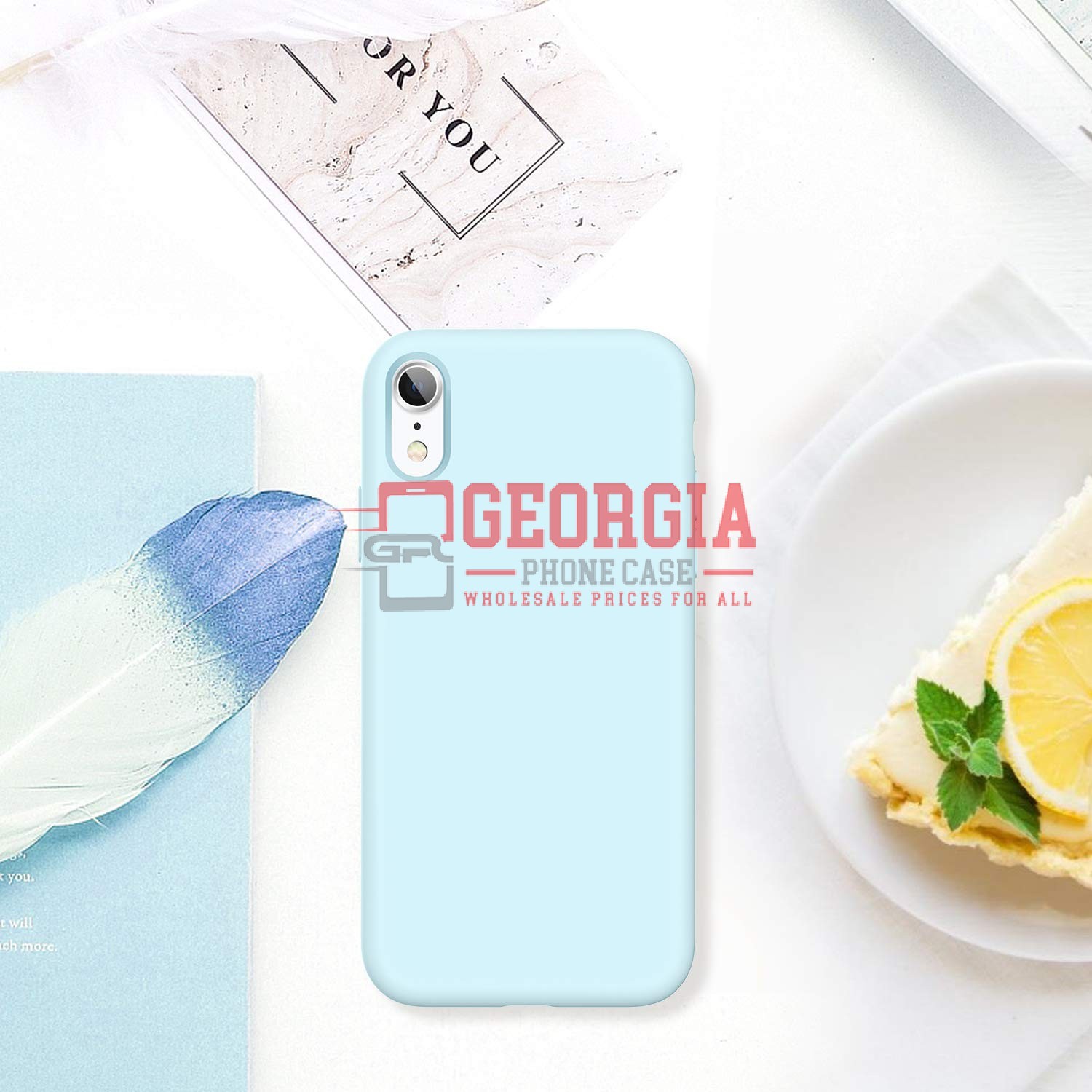 D90-Light Blue 6.1inch iPhone XR Liquid Silicone Case Slim Soft Gel Rubber Back Cover – Georgia Phone Case