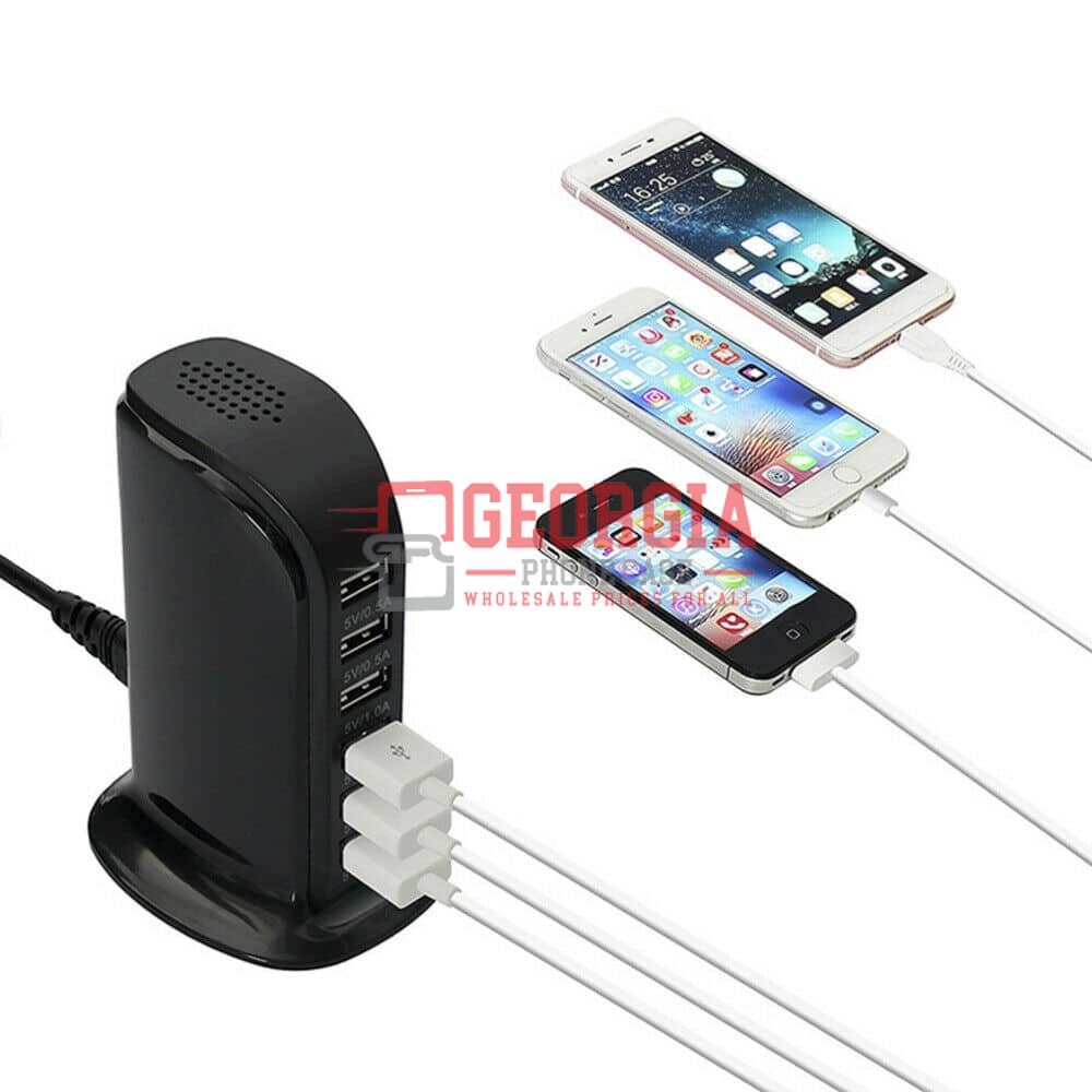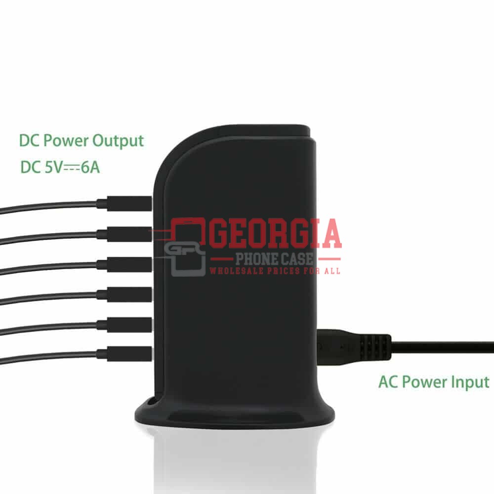 D552-Black 30W Multi 6 Port USB Charger Rapid Charging Station Desktop Travel Hub Original – Georgia Phone Case