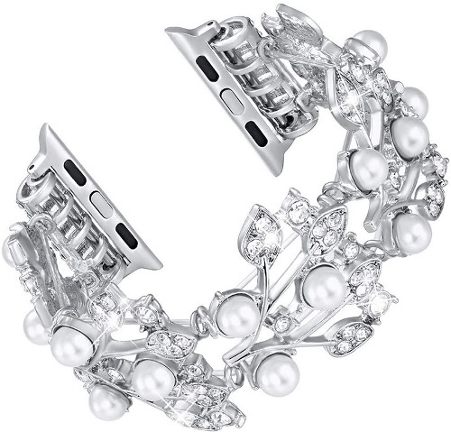 D208 – Luxury Elastic Pearl Bracelet Style Watch Band For iWatch 3/4/5/6/SE/7 Shiny Diamond Jewelry Wristband For iWatch 38mm/40mm/41mm – Georgia Phone Case